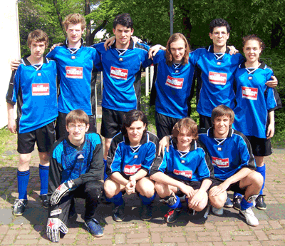 | zweiter Sieger (hinten von links) Torsten, Michael, Christoph, Sebastian H., Wasili, Charlotte (vorne von links) Sebastian E., Lukas, Fabio, Tobias |