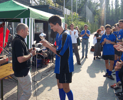 | Pokalübergabe Tobias wird als bester Torschütze ausgezeichnet |
